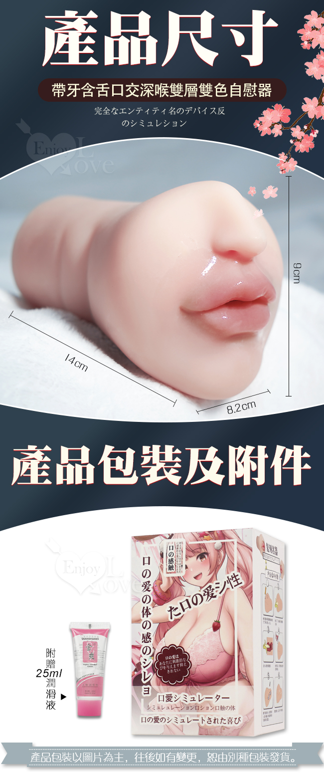 | 真實の復刻 ‧ 超逼真帶牙含舌口交深喉雙層雙色自慰器 附25ml潤滑液