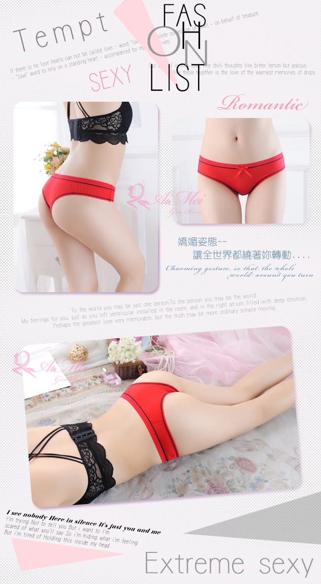 ►您現在的位置:首頁>純愛可人!低腰直條壓紋美臀T字褲﹝紅﹞