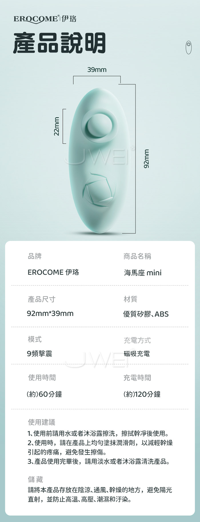 | EROCOME伊珞.SEAHORSE Mini 海馬座 9頻雙點擊震 雙潮突擊穿戴強震APP遙控跳蛋