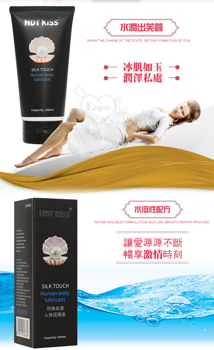 | HOT KLSS 熱吻 ‧ 珍珠絲滑 自然無色人體水性潤滑液 200ml+送尖嘴