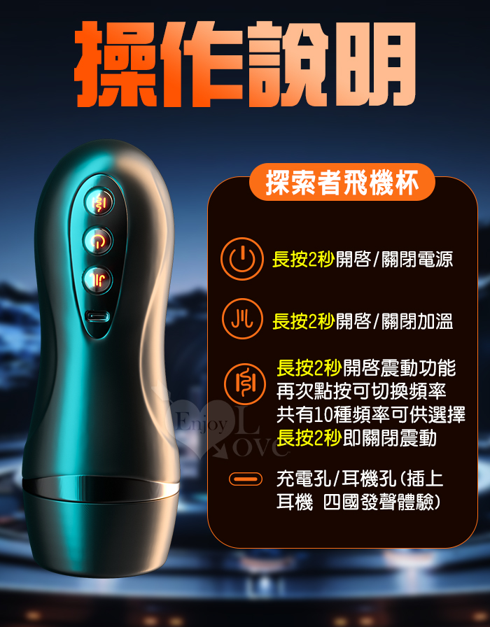 探索者.免提叫床10變頻震動打飛機杯自慰杯(四國語音呻吟+加溫+免持吸盤+附耳機+USB充電﹞