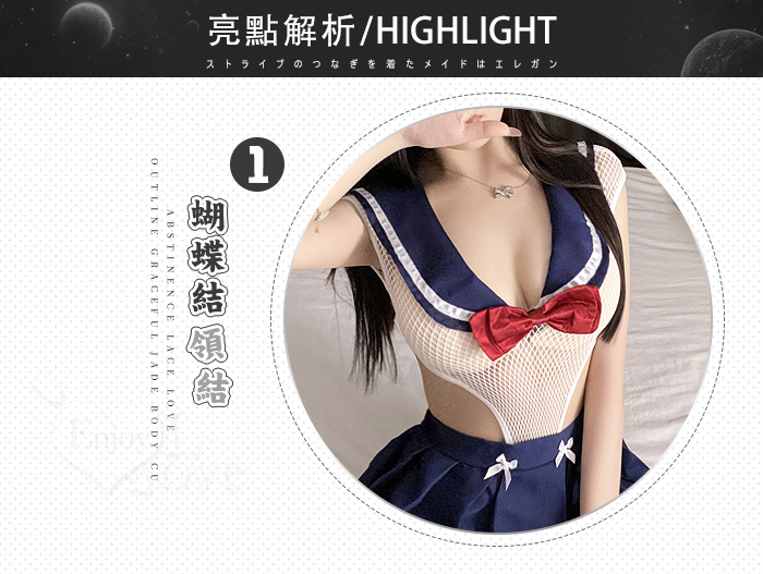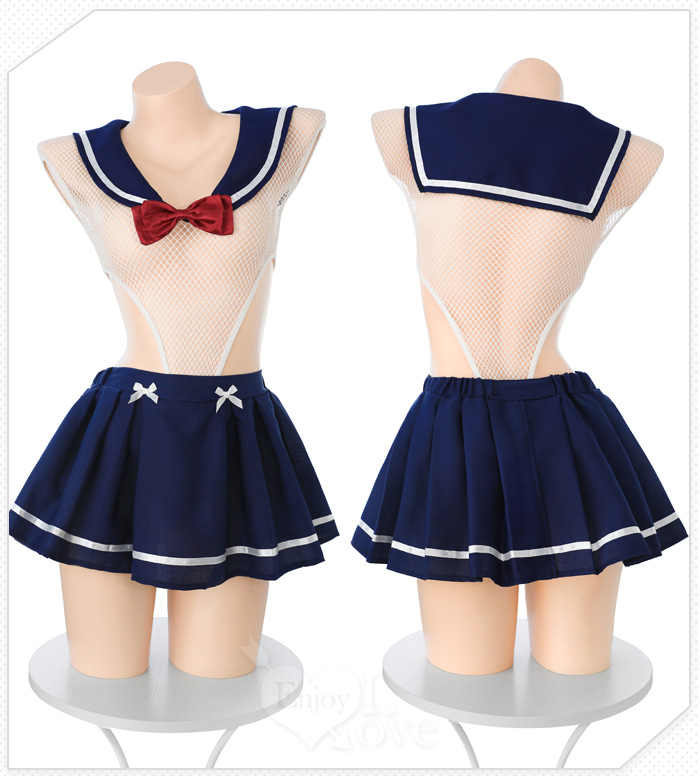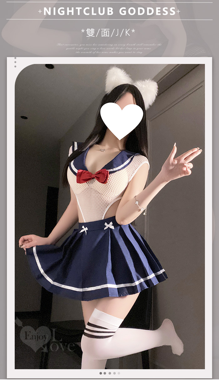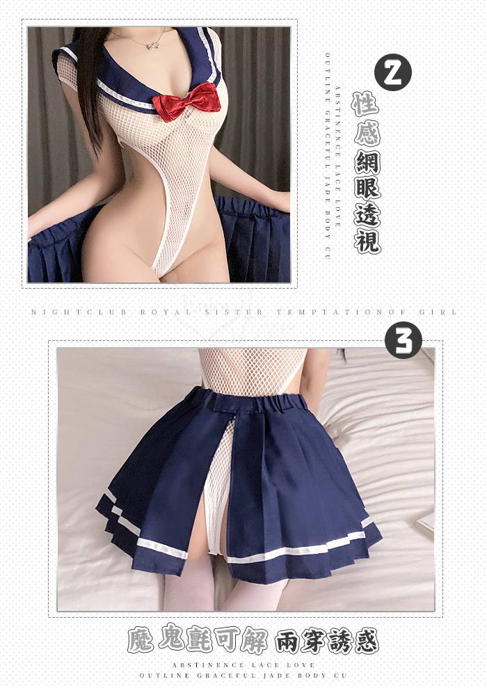 學生角色扮演服!性感網眼透視高衩開襠連身衣 × 百褶裙甜魅二件組