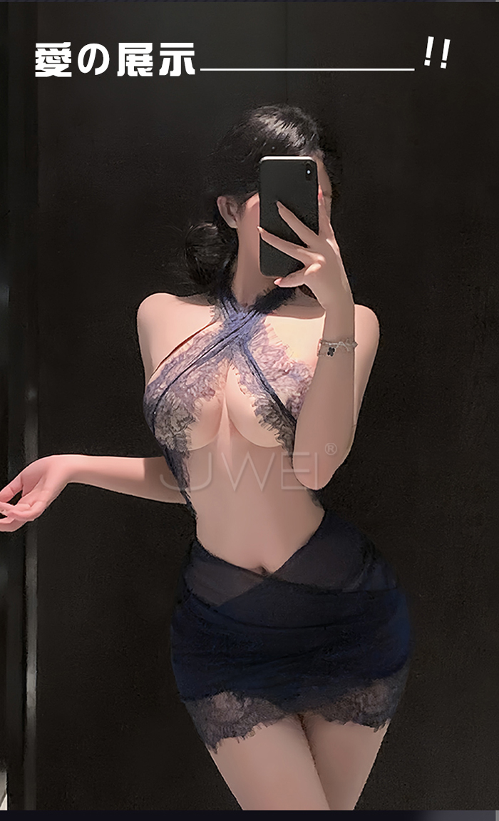 ►您現在的位置:首頁>藍夜撩夢.性感交叉美胸露背透紗蕾絲包臀睡裙【睡裙+T褲】