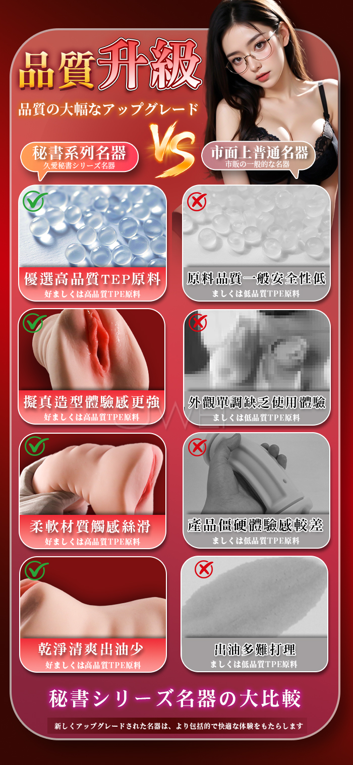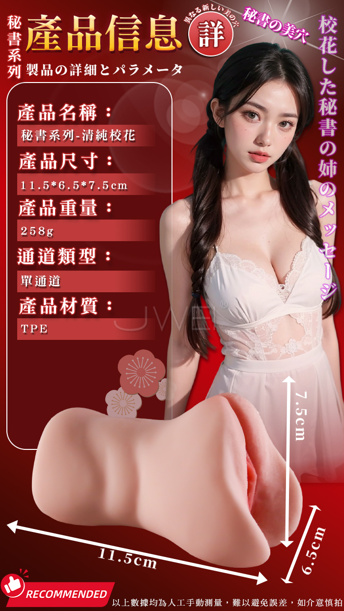 秘書擬真複製系列,柔美蜜穴內腔擠壓 肉層緊緊包裹擠壓,看得見的擬真入口 優選高品質TPE,柔軟觸感更絲滑,乾淨清爽出油少 產品規格 ■尺寸:大小詳如圖片標示 ■材質:TPE