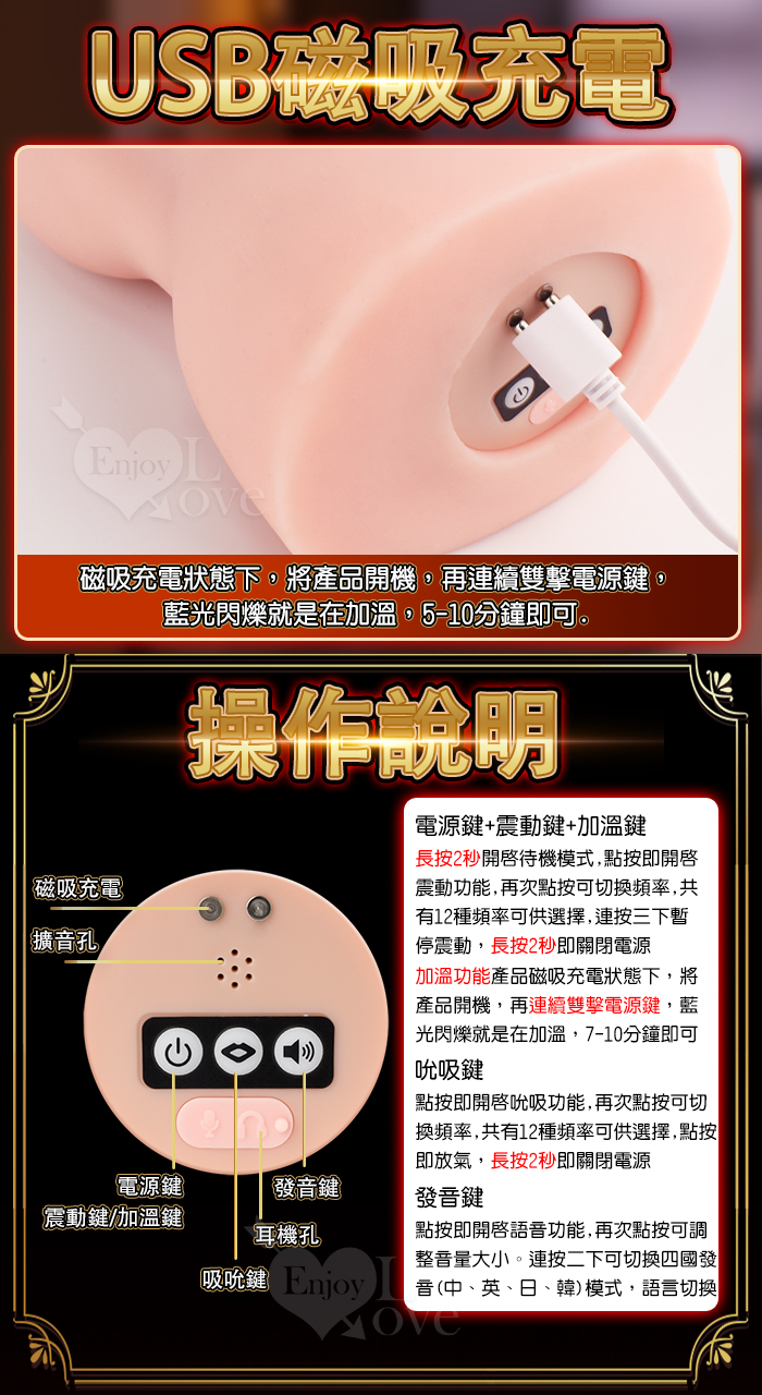 極上美熟女さん ‧ 智能感應互動四國發音 12X吮吸+12X震動~真實の私完壁肉感雙層潮紅溫暖通道電動名器﹝附耳機﹞