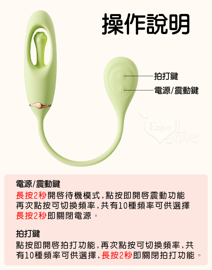 ROSELEX 舒兒 ‧ 全方位拍打撩撥/酥麻爽震 跳蛋按摩器﹝10頻獨立調控/入體強震+內腔拍擊﹞綠