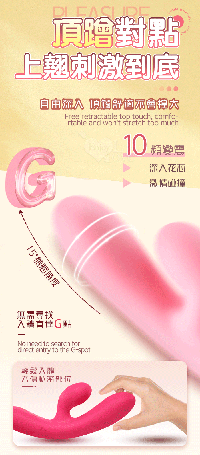 PLEASURE 西婭 ‧ 雙強震動10頻撩撥入體內外刺激G點按摩棒﹝親膚矽膠/收腰設計/15微翹角度﹞洋紅