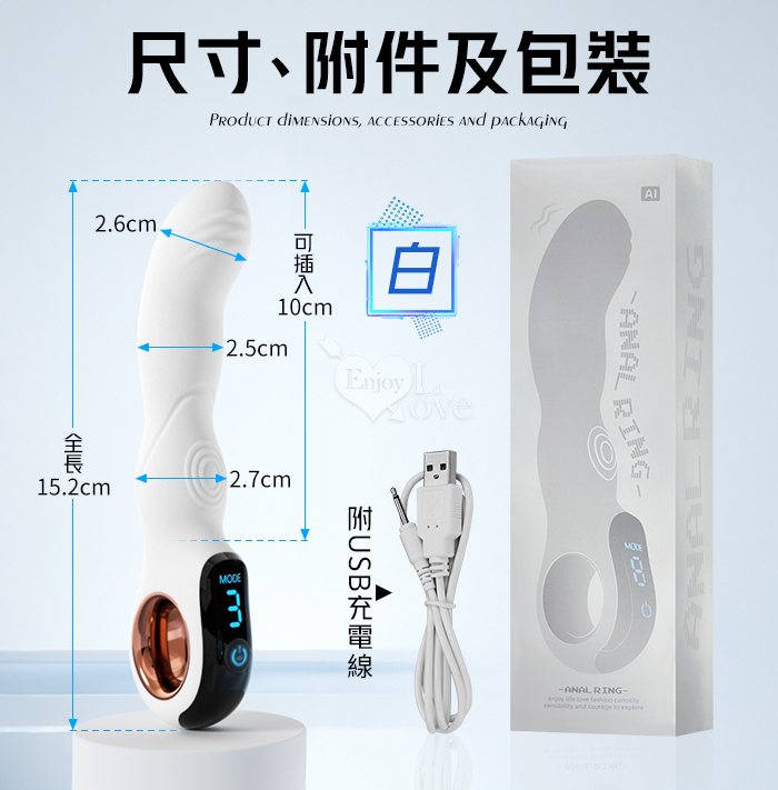ROSELEX 指環前列腺~深度激活後庭按摩器-液晶視屏顯示10頻震動/可手機APP遙控﹝具兩種操控模式﹞白