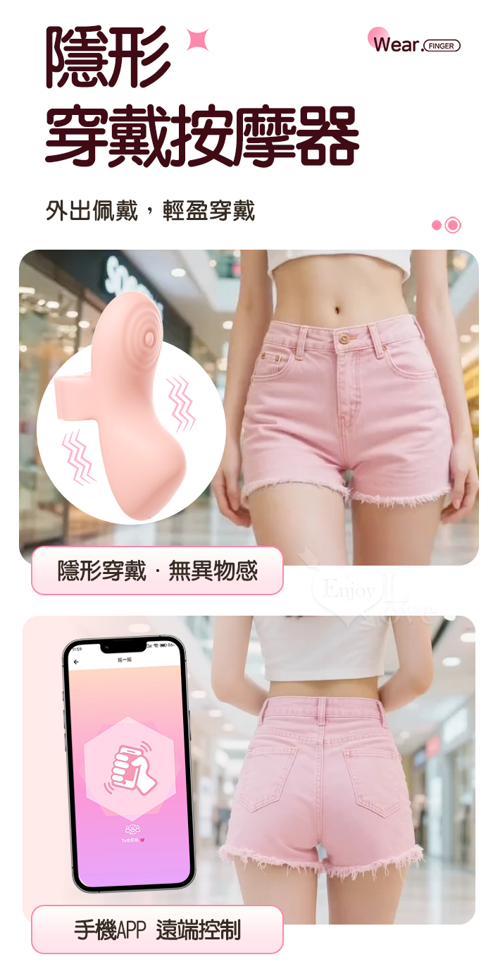 ROSELEX 勞樂斯 ‧快樂指尖 ‧ 10頻深層精準震顫陰蒂刺激調情自慰兩相宜穿戴按摩器 - 可手機APP遙控﹝具兩種操控模式﹞粉