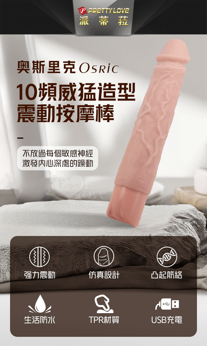 派蒂菈 ‧ Osric 奧斯里克 10段變頻震動 膚色肌仿真筋絡威猛老二造型充電按摩棒﹝NO.2/8.8″ 22cm﹞