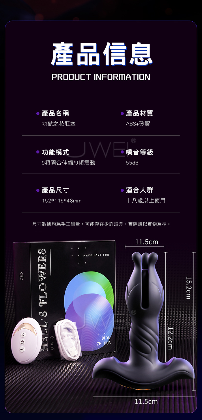 地獄之花.9x9段開合+伸縮+強震 超激爽兩用後庭塞【遙控款】