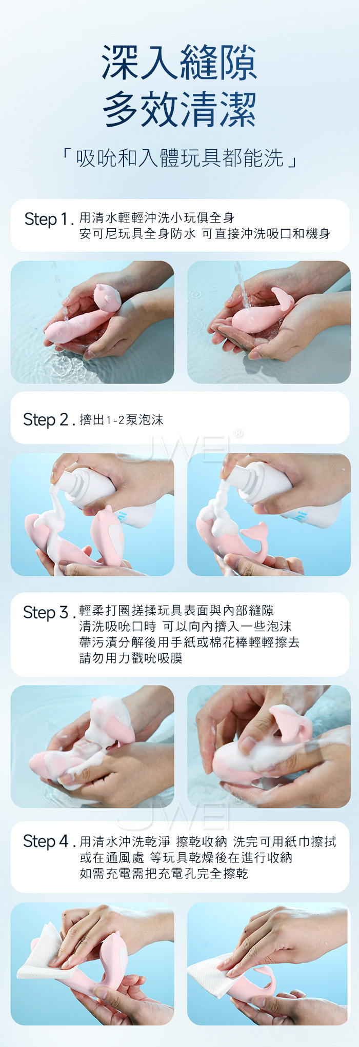 清潔抑菌,護理更簡單便捷,深度清潔淨享愉悦
