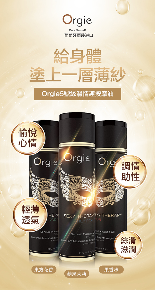 ►您現在的位置:首頁>葡萄牙Orgie.Sexy Therapy MASSAGE OIL 性感療法 - 春情 調情按摩油 200ml