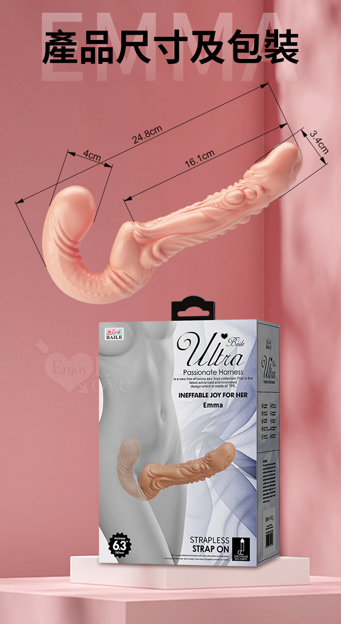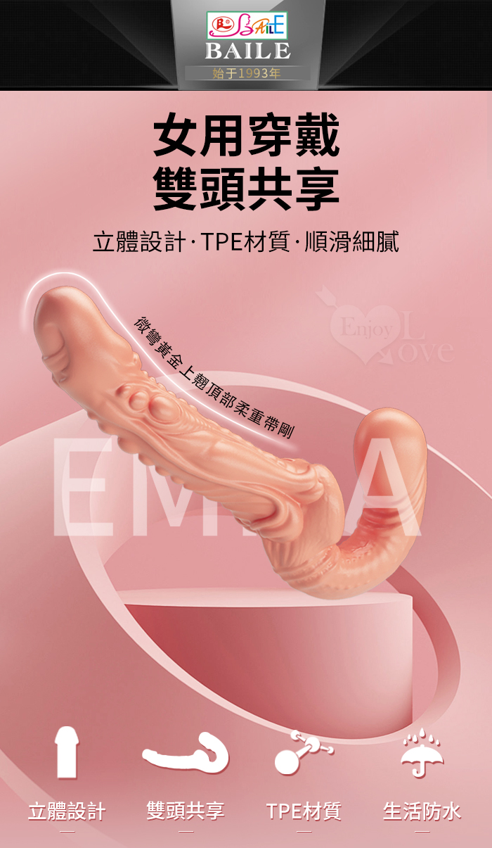 | 【BAILE】Emma 艾瑪 女同性戀 微彎上翹 立體顆粒 凸起經絡 女用穿戴雙頭共享狂野造型老二棒