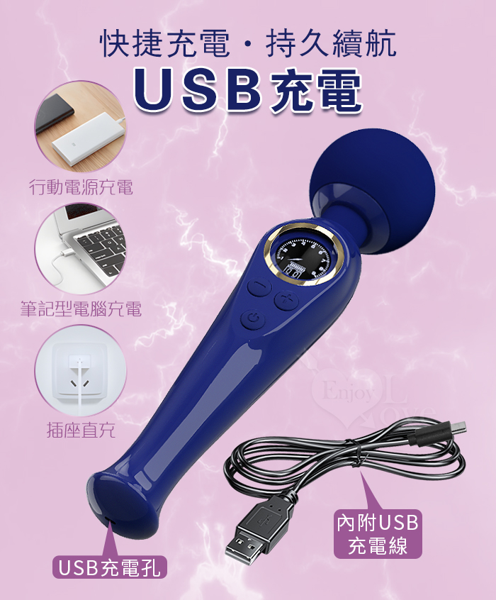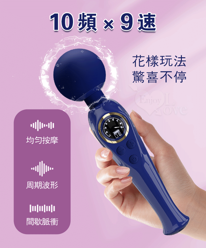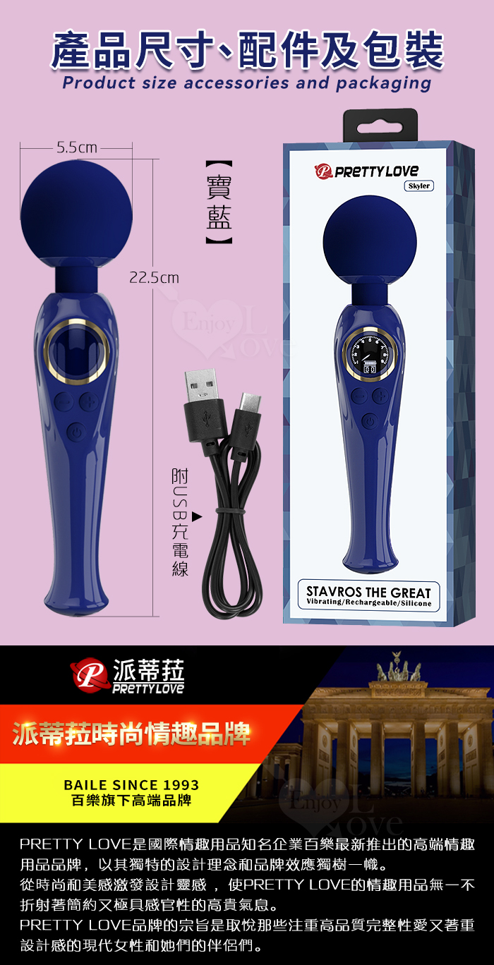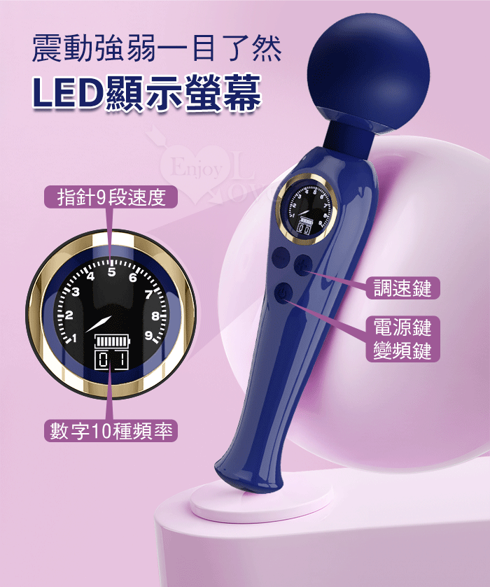 派蒂菈 ‧ SKYLER 斯凱樂 LED顯示10變頻X9段調速強震矽膠大頭AV棒 - 寶藍 (輕鬆GET敏感地帶 )