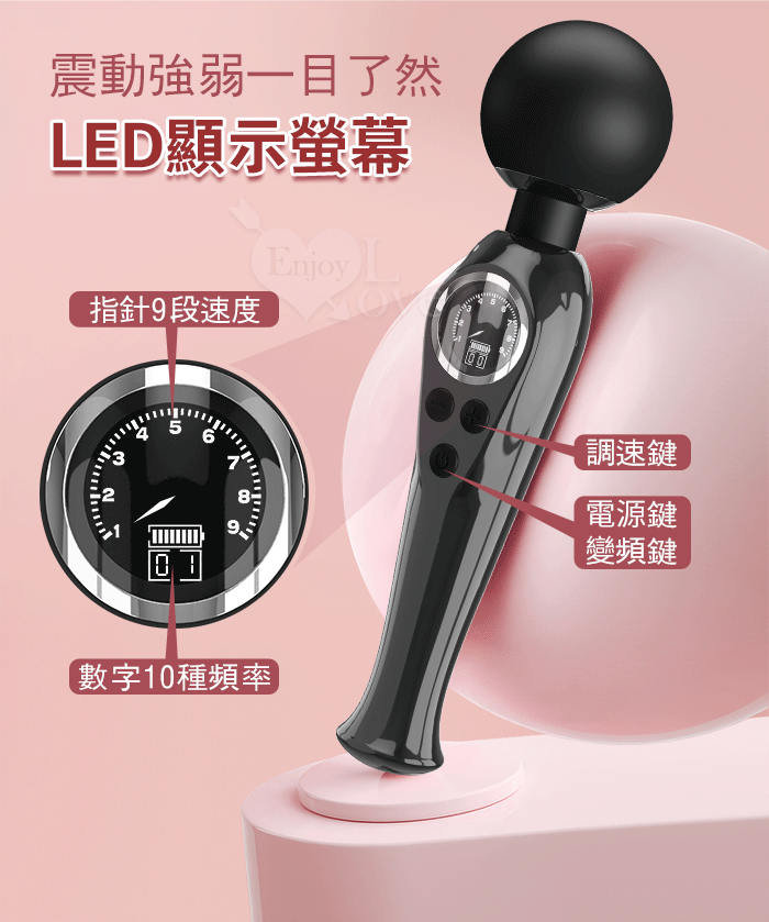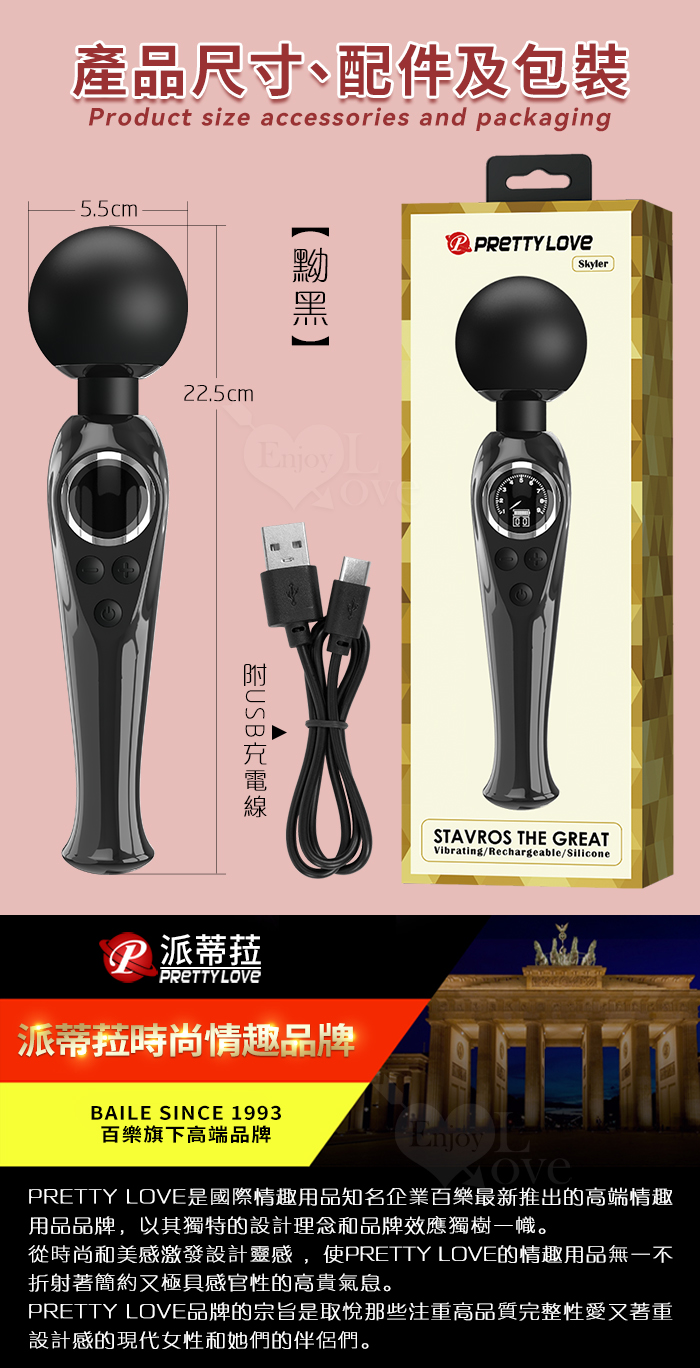 派蒂菈 ‧ SKYLER 斯凱樂 LED顯示10變頻X9段調速強震矽膠大頭AV棒 - 黝黑 (輕鬆GET敏感地帶 )