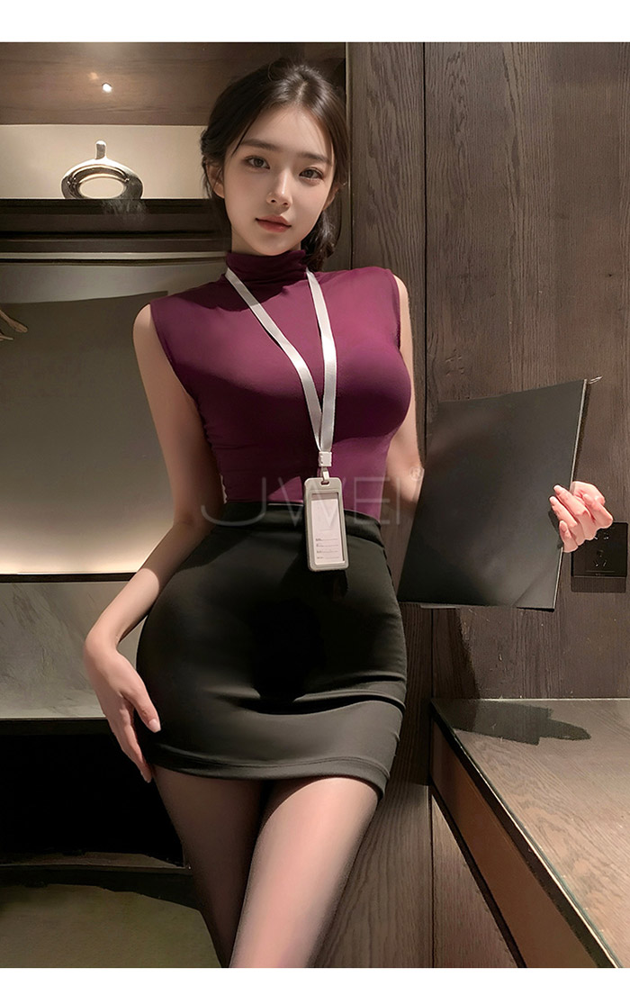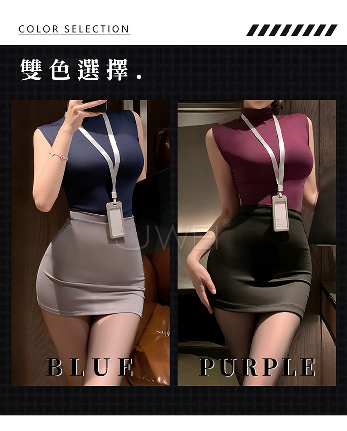 首頁>情秘演繹.胸部可剪緊身包臀禁慾系OL秘書套裝-紫+黑【上衣+工牌+包臀裙+內褲】