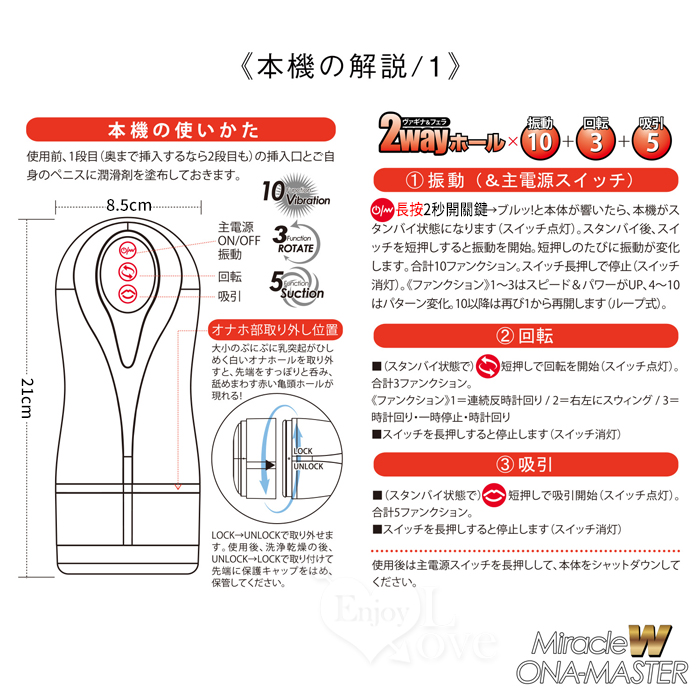 振動:10 / 回転:3 / 吸引:5 の多彩なパワーとアクションは、