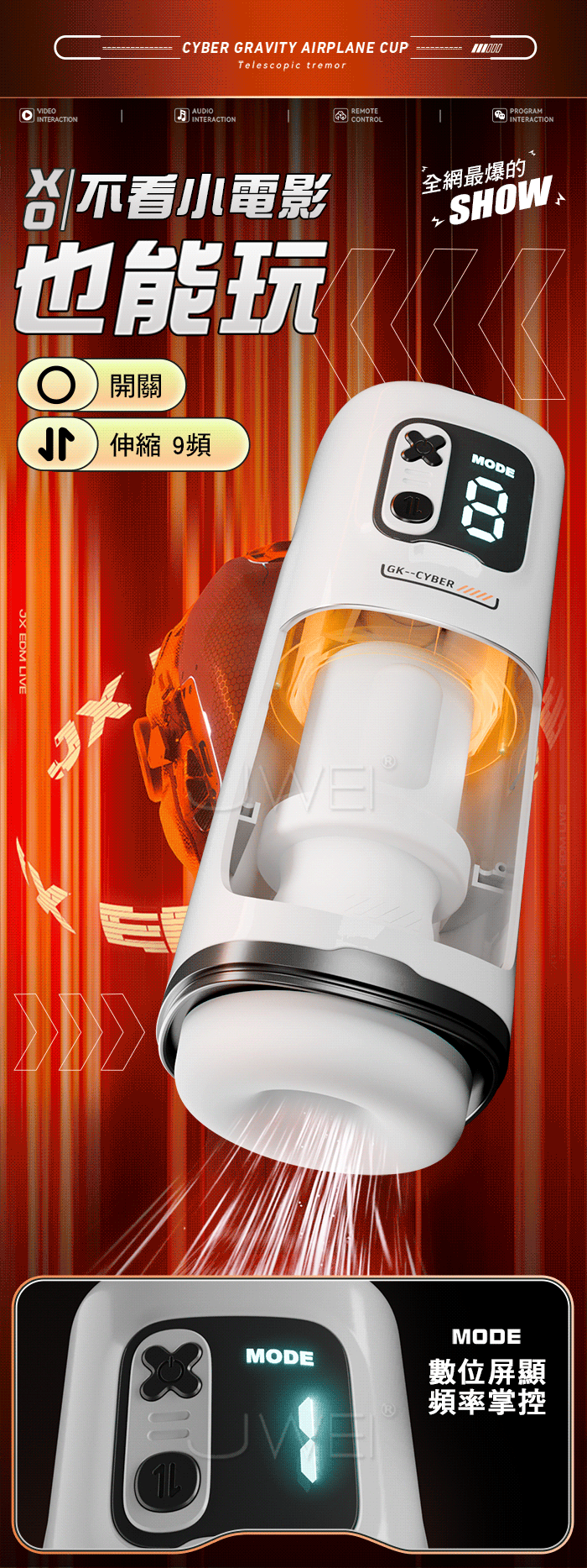 | GALAKU.賽博引力 9頻伸縮爆榨 波感通道漩渦虹吸收緊 APP操控智能飛機杯