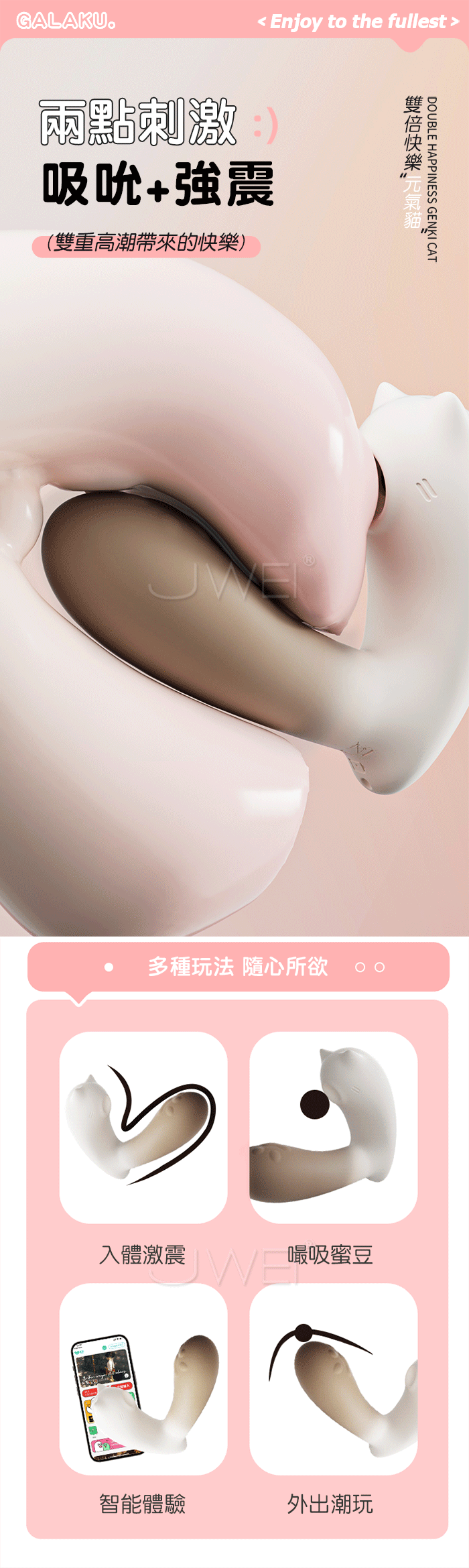 | GALAKU.元氣貓 10頻吮吸+10頻震擊G點 APP遠距遙控萌趣穿戴跳蛋