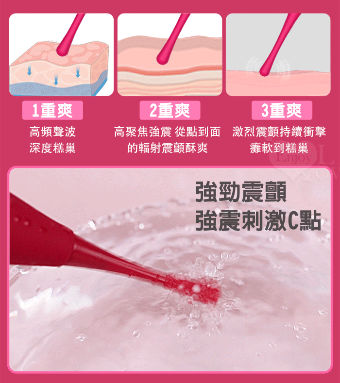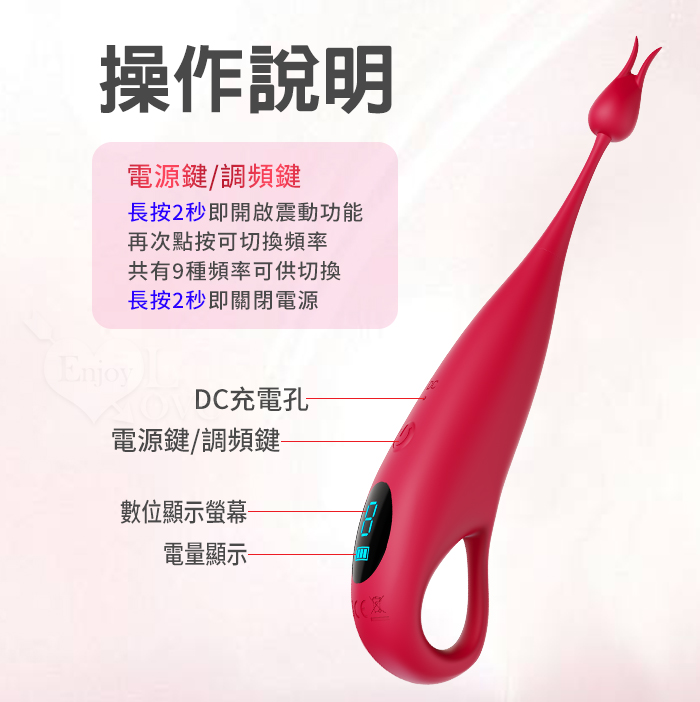 主要功能:9頻聲波高頻震動,液晶顯示刺激12,000根神經,雙頭套帶來多種花樣玩法
