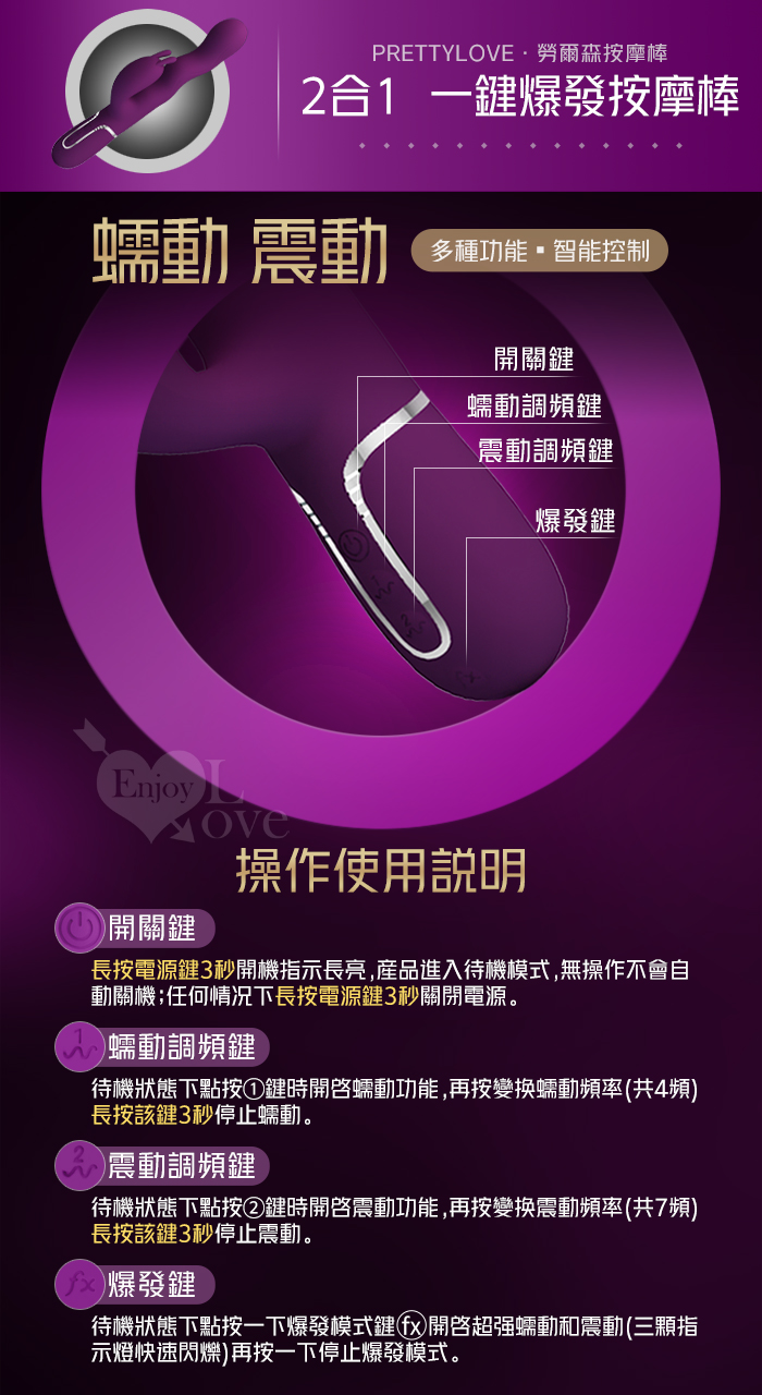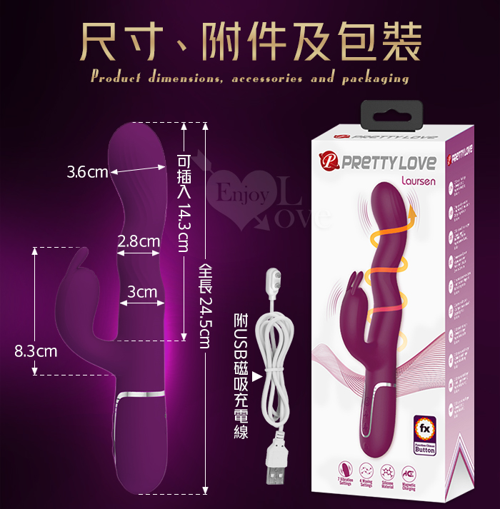 派蒂菈 ‧ Loursen 勞爾森 4蠕動+7震動 瘋狂蠕動震感內外夾擊入體按摩棒-深紫