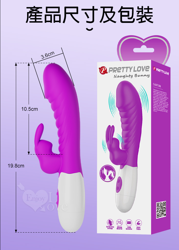 PRETTY LOVE 派蒂菈 ‧ 頑皮兔 內外雙重30頻雙頭同震按摩棒-洋紅