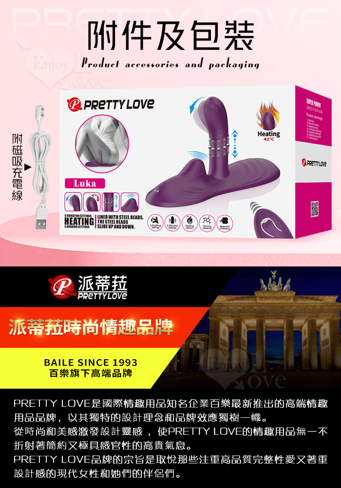 派蒂菈 ‧ 盧卡 無線遙控5x5頻摳震動+上下滑動鋼珠+免手持內外同爽加溫坐墊棒 luka