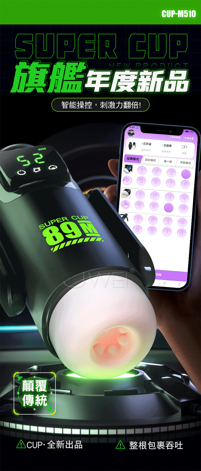 | M510.7x7段伸縮吮震 新能源女友 APP智能遠控屏顯飛機杯