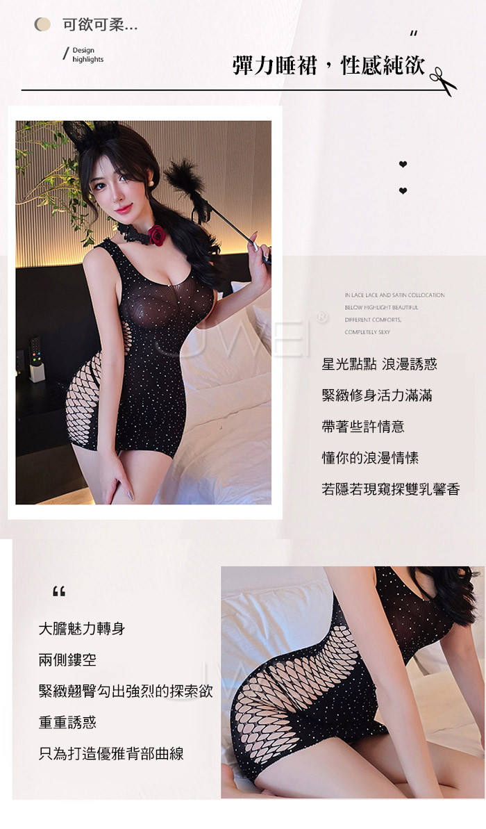 | 耀眼甜心.甜美公主風朦朧鏤空透視包臀網衣