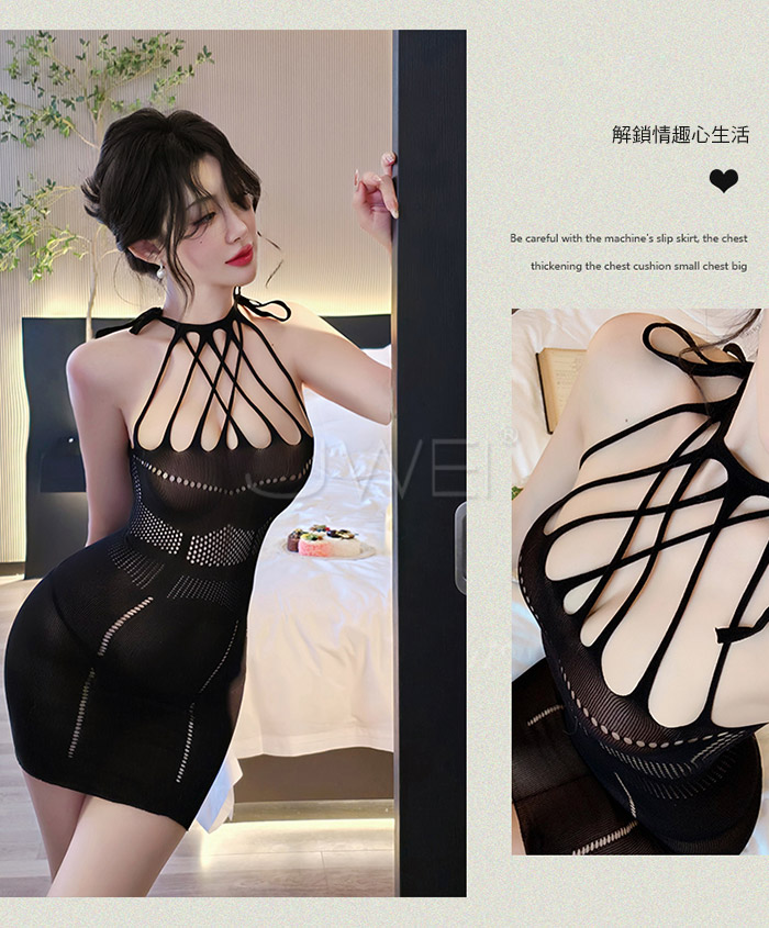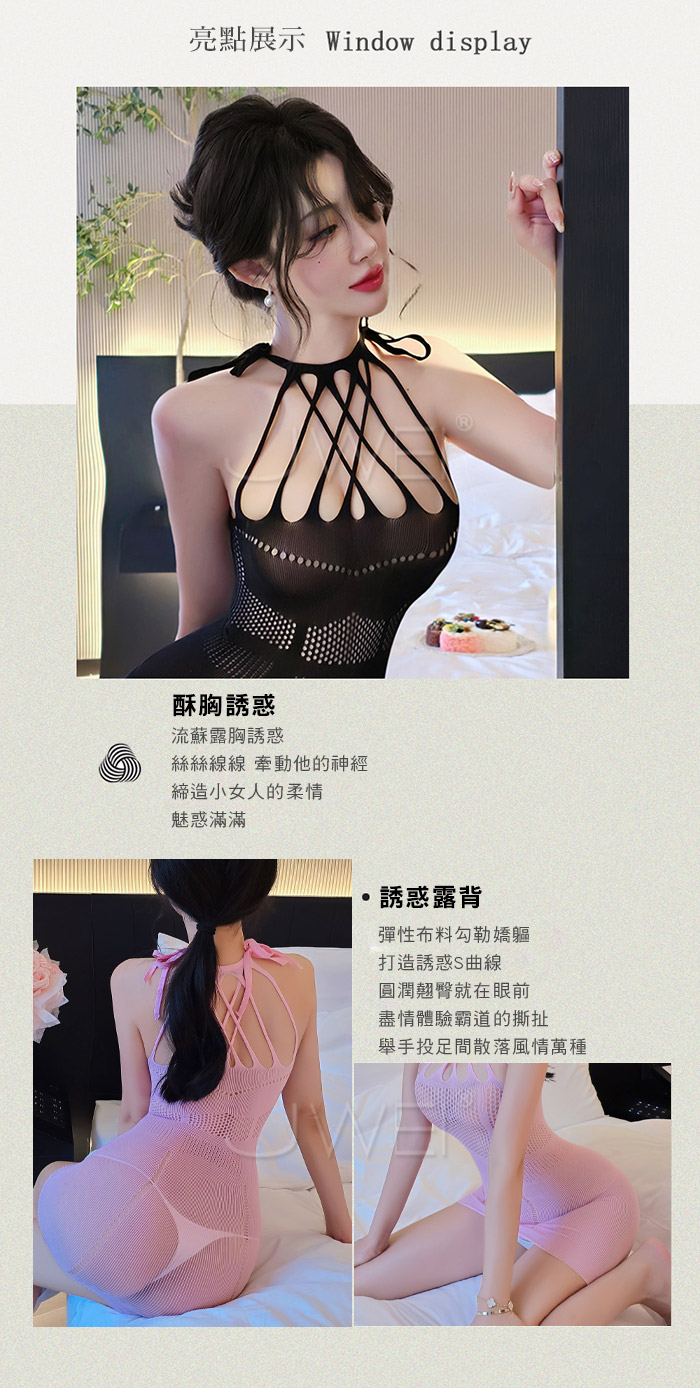 首頁>爵色風華.誘惑流蘇交叉露胸美背鏤空包臀網衣【粉色】