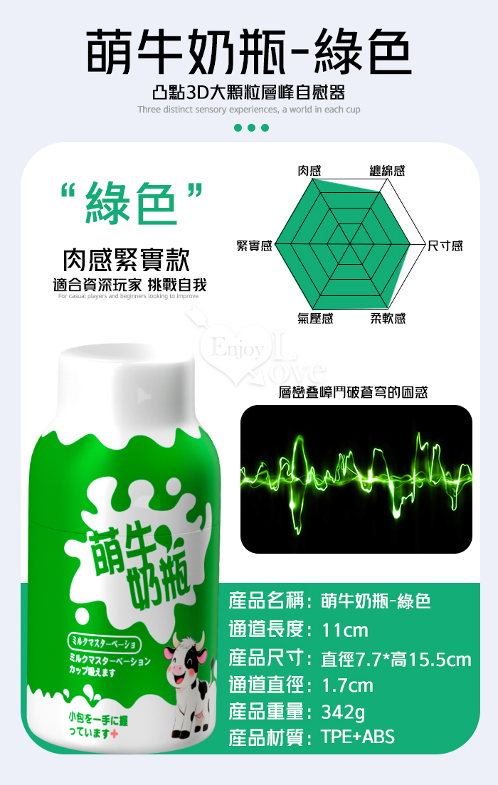 萌牛奶瓶 ‧ 凸點3D大顆粒層峰自慰器﹝高階肉感緊實款-綠色﹞