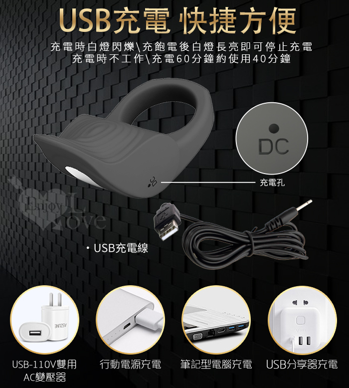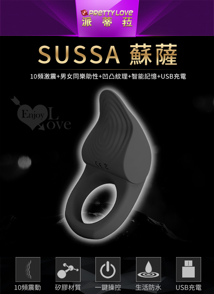 派蒂菈 ‧ SUSSA 蘇薩 震動鎖精刺激陰蒂套環﹝10頻激震+男女同樂助性+凹凸紋理+智能記憶+USB充電﹞
