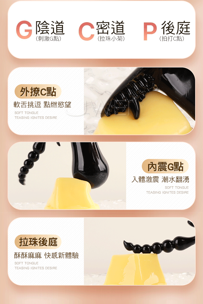 欲逗.10段變頻強震 三洞齊攻拉珠毒龍舌舔撩撥後庭按摩器【黑色遙控款】
