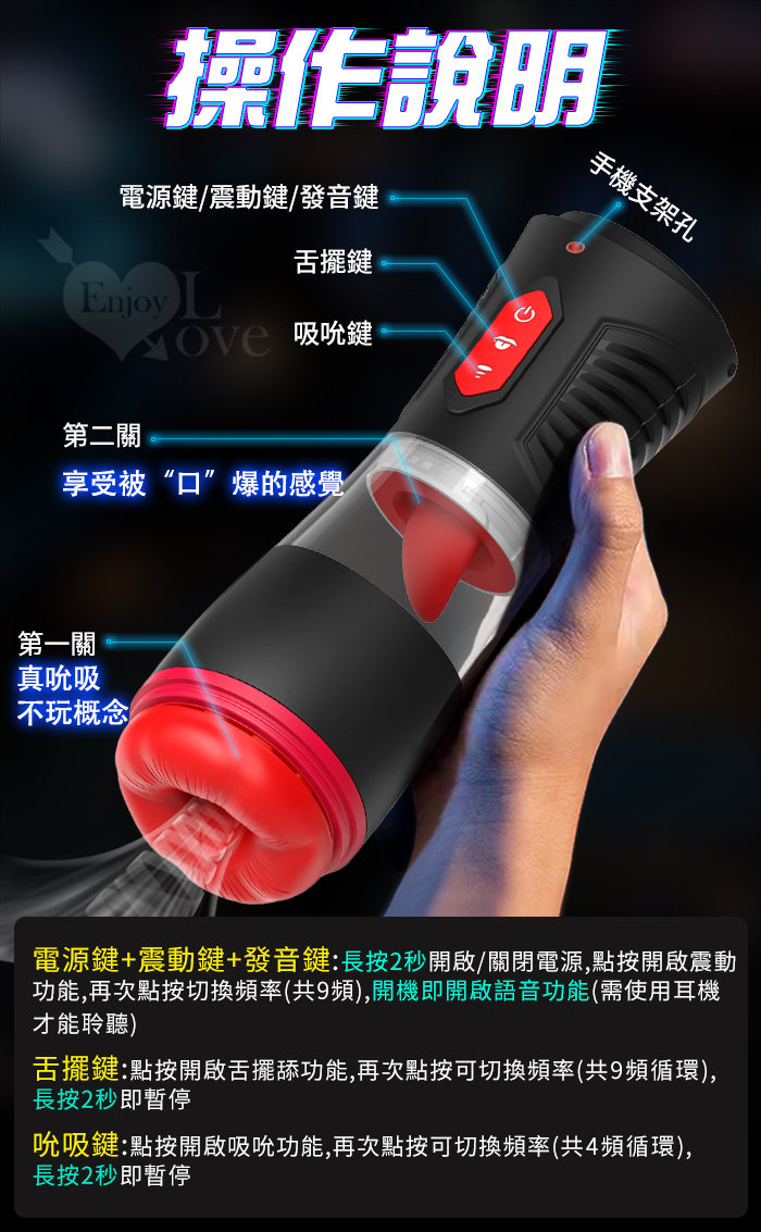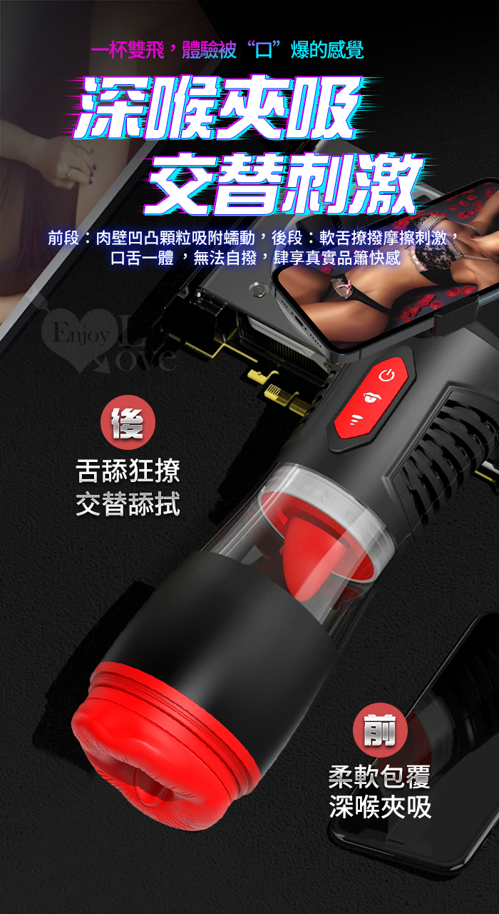►您現在的位置:首頁>Hgod 007-II ‧ AI新智能自動舌舔+吞莖吮吸快感電動飛機杯﹝4頻收縮吸吮X9頻舌擺舔+淫聲耳機+手機架﹞