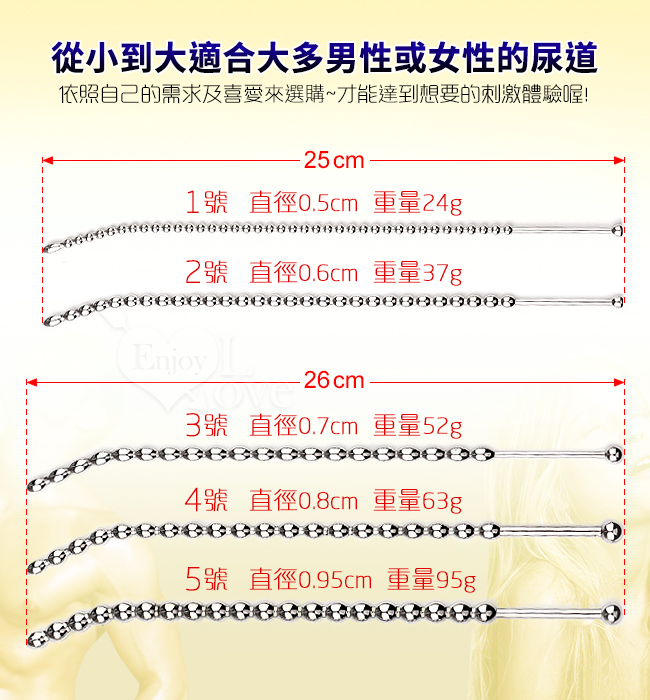 另類玩虐刺激 ‧ 不銹鋼尿道馬眼連珠彎弧 擴張入侵長棒 - 2號﹝直徑0.6公分/全長25公分﹞
