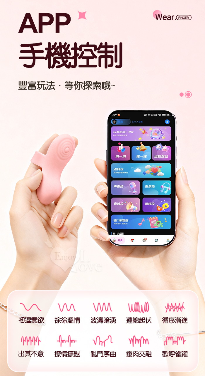 ROSELEX 勞樂斯 ‧快樂指尖 ‧ 10頻深層精準震顫陰蒂刺激調情自慰兩相宜穿戴按摩器 - 可手機APP遙控﹝具兩種操控模式﹞粉