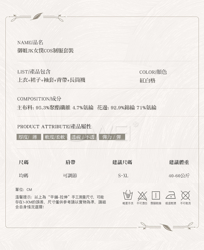 ■內容物:上衣+裙子+袖套+背帶+長筒襪