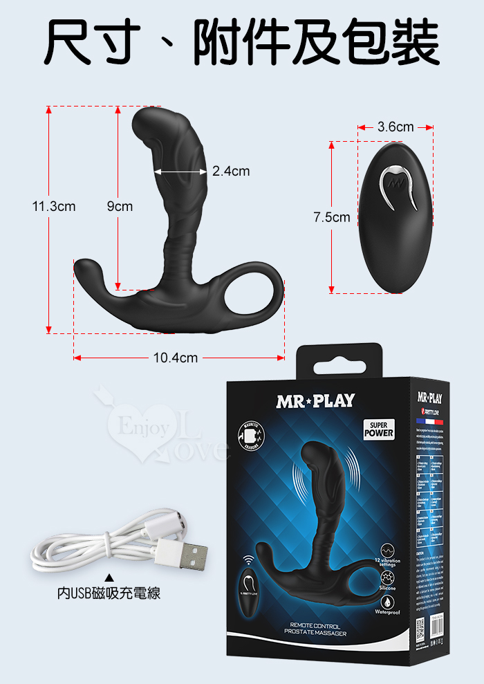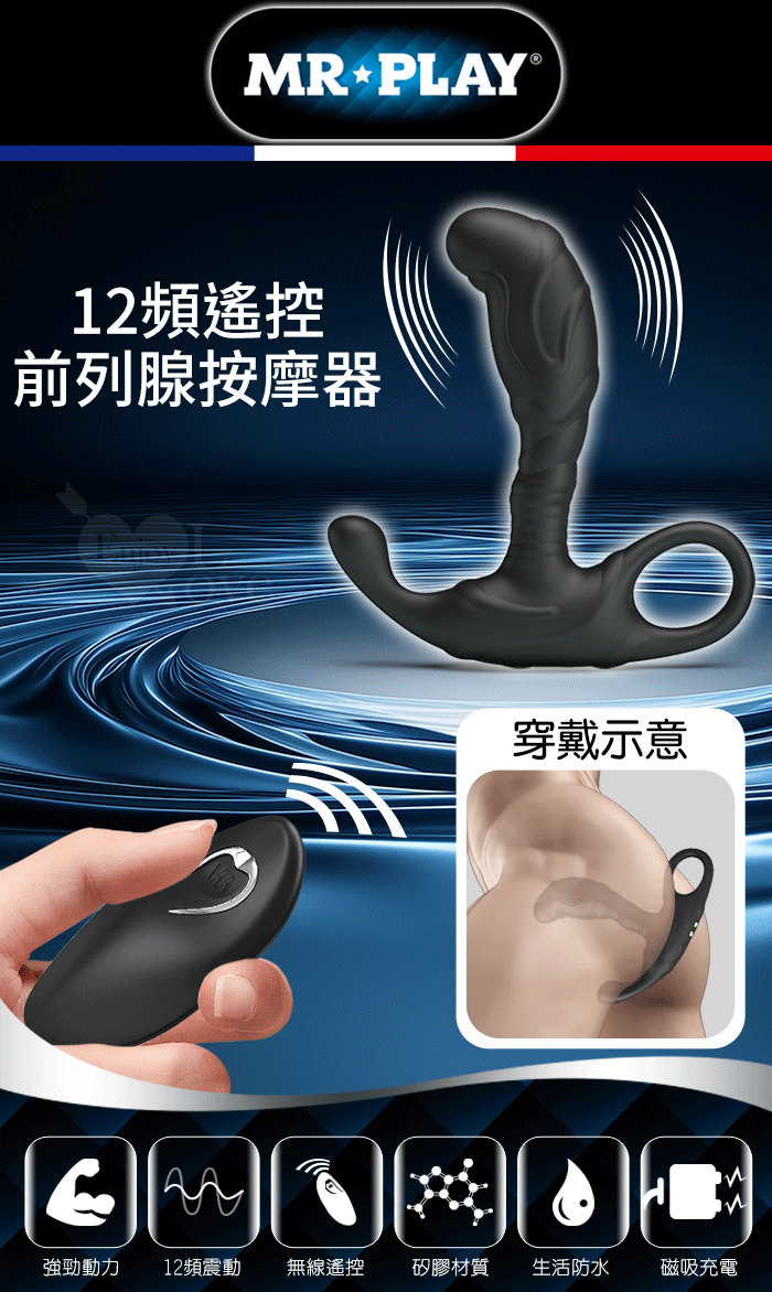| MR‧PLAY 鋼鐵之狼 ‧ 無線遙控12頻強力震動前列腺後庭按摩器-穿戴舒適貼合/親膚矽膠/磁吸充電