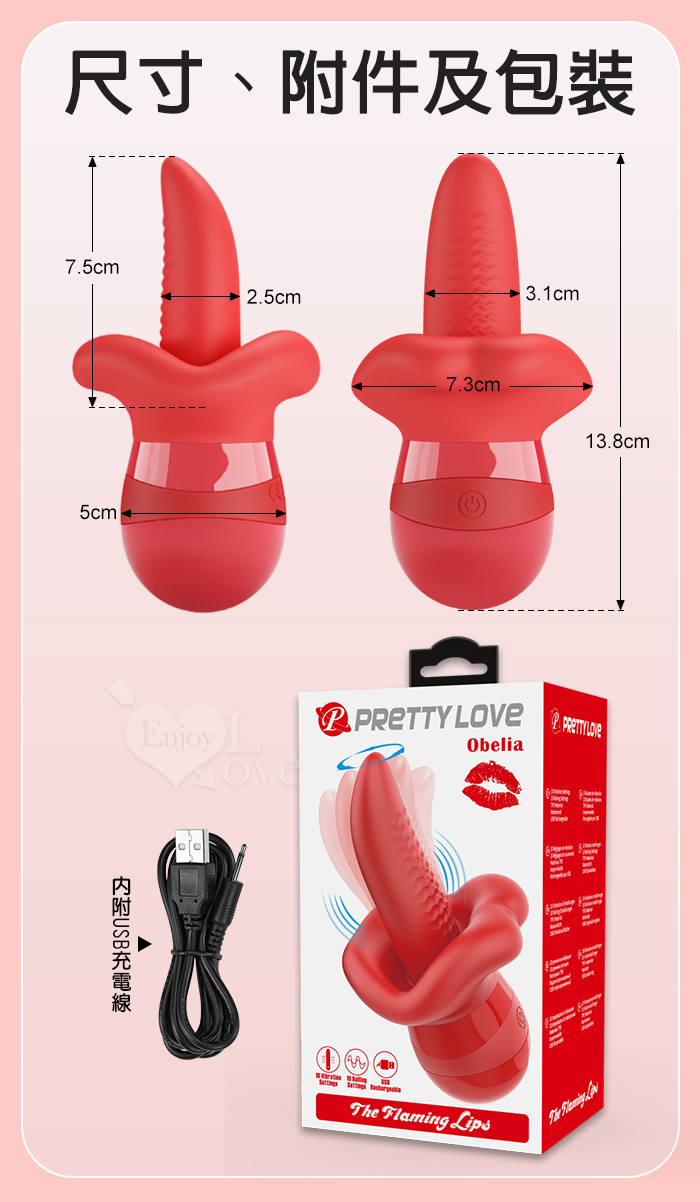 | 派蒂菈 ‧ Obelia 奧貝利亞 10頻巧舌红唇360°狂擺+10頻震動按摩器﹝軟糯Q彈材質+USB便捷充電﹞