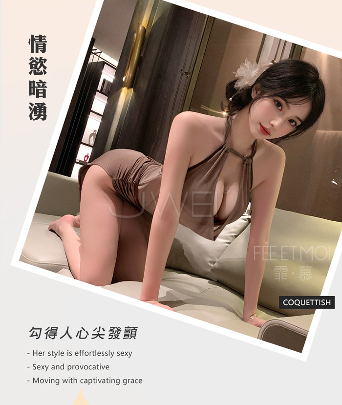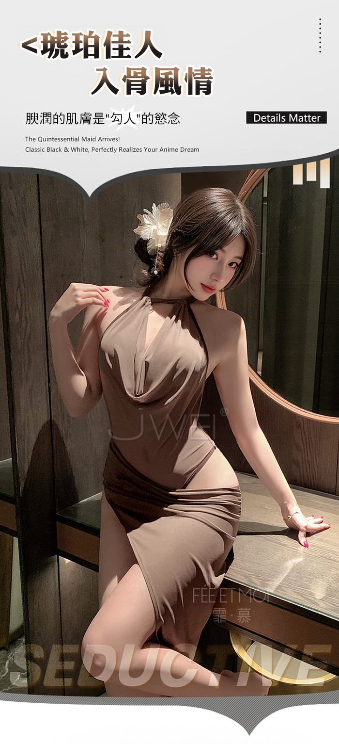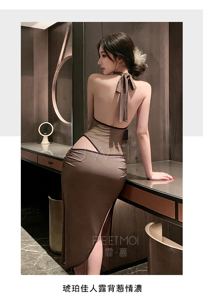 首頁>琥珀佳人.高雅深V蕩領裸紗透視側高衩連身裙