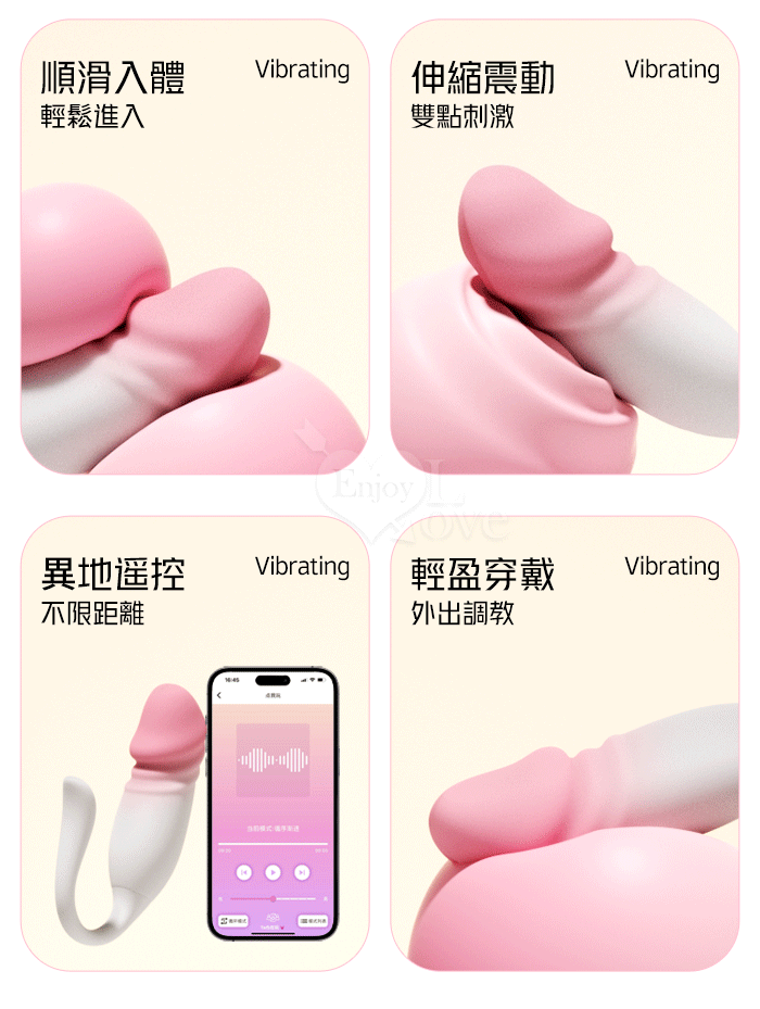 ROSELEX 閨蜜 10X伸縮震動小尾巴仿真老二按摩器 - 可手機APP遙控﹝具兩種操控模式﹞白漸變粉色
