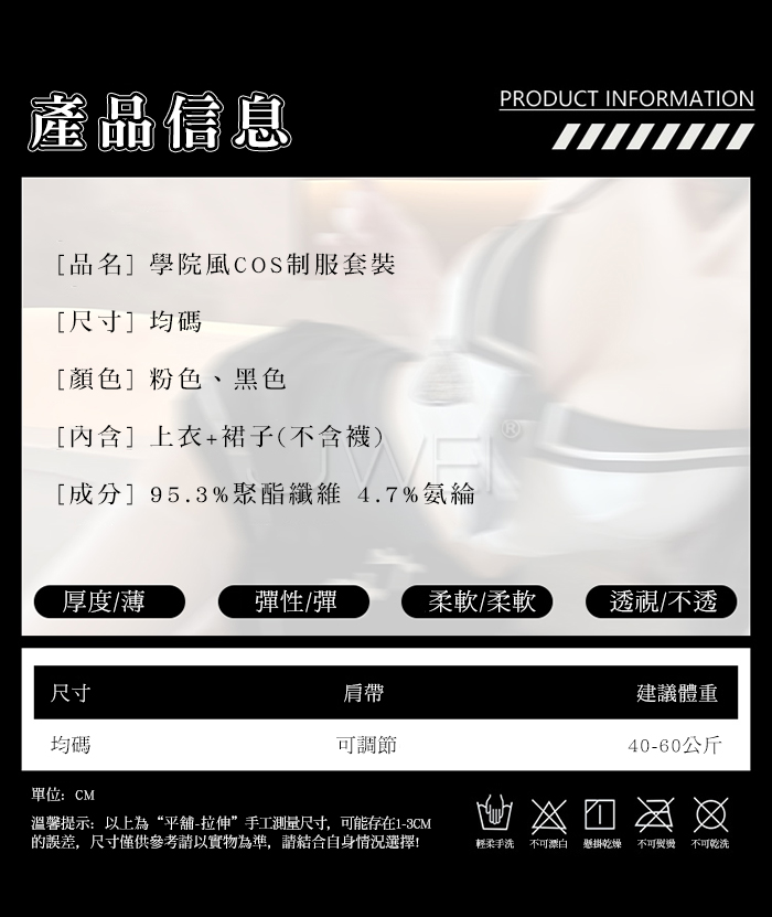 2.基於保障消費者個人衛生,情趣衣物類恕不接受退換貨,如為商品本身暇疵,接受三日內換貨,請勿試穿。